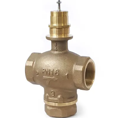 PN16, üç yollu içten dişli DN25 (1”), Kvs8 bronz vana gövdesi, 2…120ºC sıcaklık aralıklarında sıvı akışı, MVT motorla birlikte kullanıma uygun