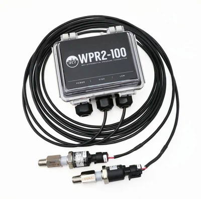 Wet to Wet Differential Pressure Transducer w/ Remote Probes. The A/WPR2 Series Remote Wet to Wet Differential Pressure Sensor is designed to reduce installation time and to provide mounting flexibility, often eliminating the need for additional plumbing. They accurately measure wet media pressures in a variety of applications. Commonly used for monitoring pumps, these devices are also ideal for measuring pressure across filters, heat exchangers and compressors. The A/WPR2’s enclosure opens conveniently to allow it to be reconfigured between three additional ranges (see order grid) and outputs of 4 to 20 mA, 0 to 5 VDC, or 0 to 10 VDC. The A/WPR2 Series can measure pressure ranges as low as 0 to 15 psi and as high as 0 to 300 psi. The A/WPR2 also features a push button auto zero function for remote calibration efficiency. Our Pressure Sensors or Transmitters are designed for HVAC, Building Automation, and light industrial systems. Typical applications include: chilled water, hot water systems, DP across heat exchanges, chillers, pump control, proof of pump flow status, proof of water flow in chillers, water source heat pumps, DP control of pump VFDs, heating and cooling water systems, and chiller evaporators. The A/WPR2 Series is covered by ACI's Five (5) Year Limited Warranty.
