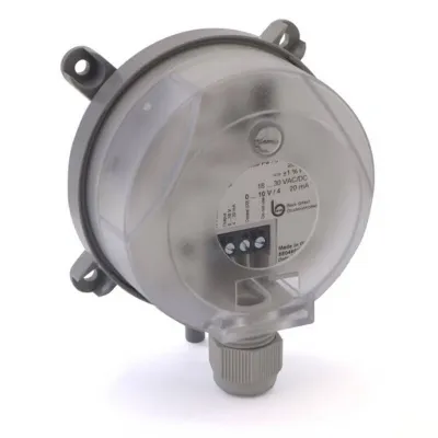 Hava ve agresif olmayan gazlar için fark basınç sensörü, 0...500Pa ve 0...1.000Pa aralığında seçenekli ölçüm yapabilme, 0-10V DC / 4-20mA sinyal çıkışlı, 24V AC/DC enerji beslemesi, çalışma sıcaklığı: 0…+50°C ısı aralığındaki ortamda kullanıma uygun, IP54 koruma sınıfı