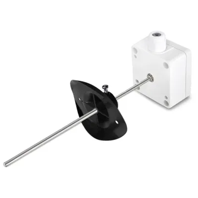 Kanal tipi nem ve sıcaklık sensörü (0–100% ve 0...50°C), 0~10V DC sinyal çıkışlı, 24V AC/DC, IP54