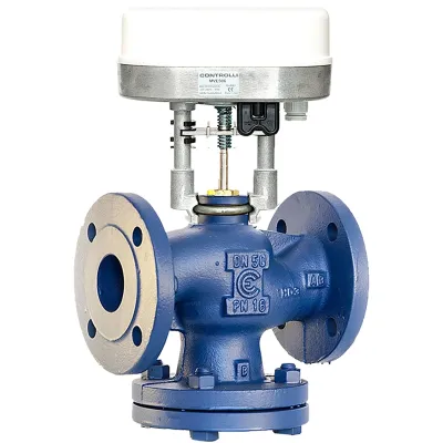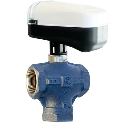 PN16, üç yollu içten dişli DN50 (2”), Kvs 25 vana ve yüzer kontrol motor, 230V AC, 300N, IP54