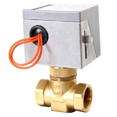 Fan coil sistemlerinin ısıtma ve soğutma serpantinlerindeki sıvı akış kontrolleri için kullanılan DN25 (1') çapında 2 yollu motorlu lineer zon kontrol vanası, içten dişli bağlantılı, Kv4m³/h, PN16 basınç dayanımlı, 2-94°C arası sıvı akışına müsait, 0,8bar basınca kadar sistemlerde çalışabilir prinç vana gövdesi, 230V AC enerji beslemeli, 2 kablolu NC (normalde kapalı) On/Off kontrol edilebilir, 18sn açma 7sn kapama süresi, IP40 koruma sınıfına haiz vana motoru