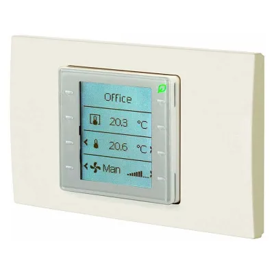 Room unit for KNX PL-Link, freely configurable, flush-mounted with square bezel