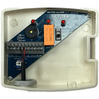 Su kaçak dedekörü, dahili alarm siren ve led uyarı, 24V DC enerji beslemeli, 1 adet sensör bağlanabilir, tek prob dahil, 2A NO (normalde açık) ve NC (normalde kapalı) çıkış